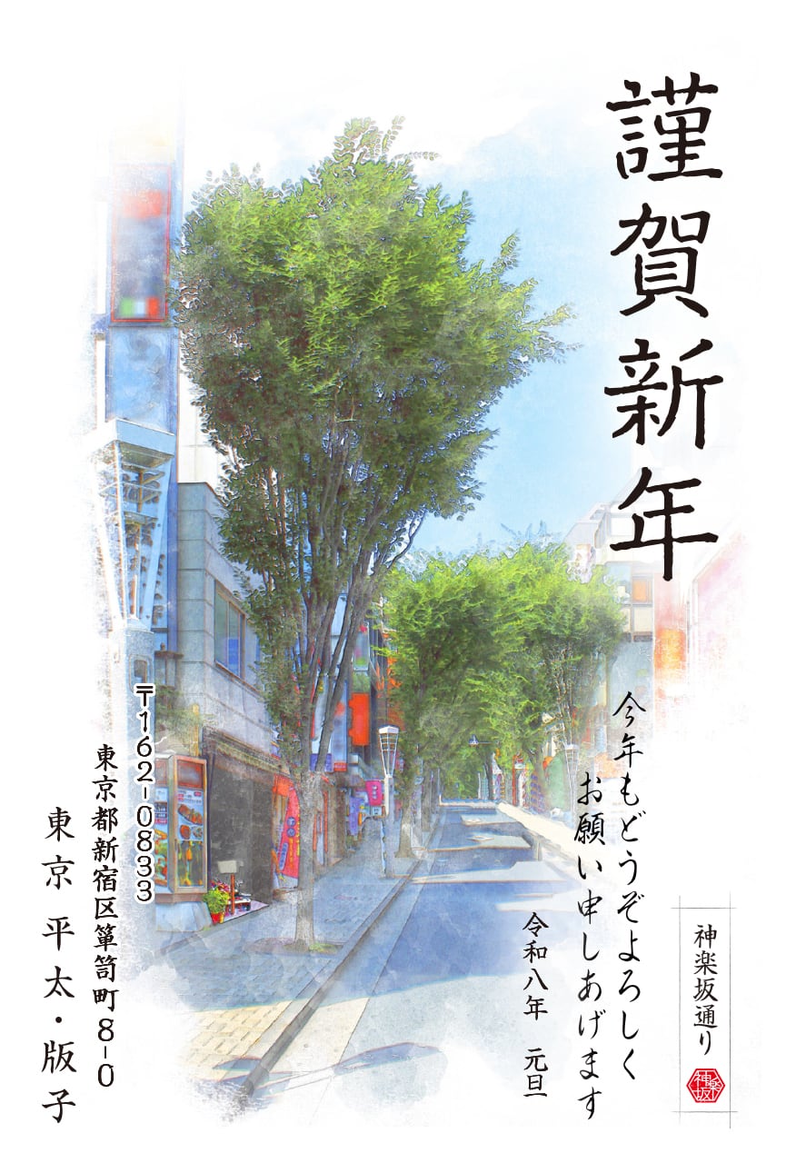 水彩画風 神楽坂通り